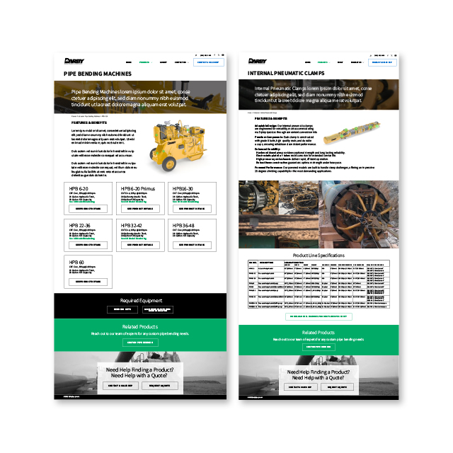 Redesign the current website to an streamlined, easy-to-navigate, and features the excellence of their products. Use current branding and colors. Pull in product photos, as well as in-use photos, throughout the site, making the path to product specifications clear.